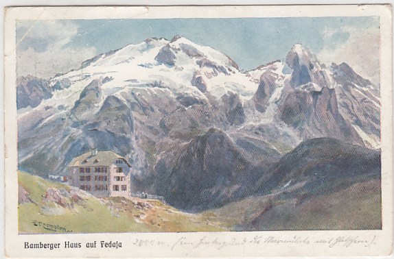 Bamberger Haus Berghaus auf Fedaja Österreich Künstlerkarte