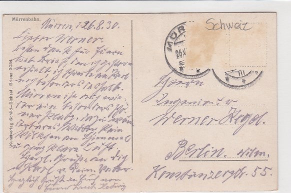 Schynige Platte Bergbahn Jungfrau Schweiz 1929