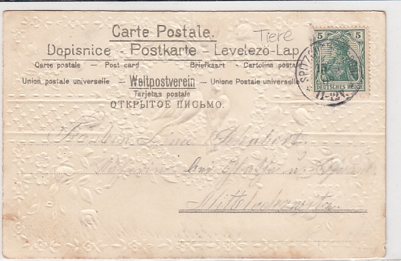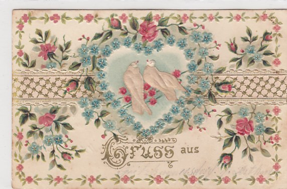 Tiere Vogel Vögel AK mit Stoff und Blumen Prägekarte