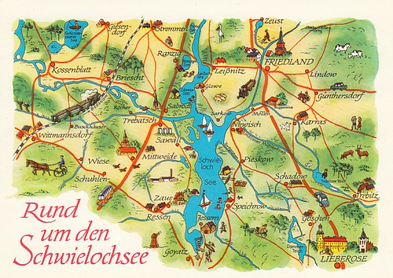 Postkarte als Landkarte Schwielochsee Friedland Lieberose Wittmannsdorf Trebatsch Schadow