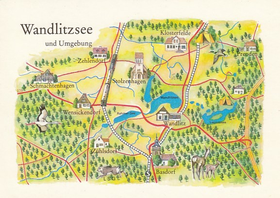 Postkarte als Landkarte Wandlitz Stolzenhagen Wenickendorf Basdorf Klosterfelde Prenden