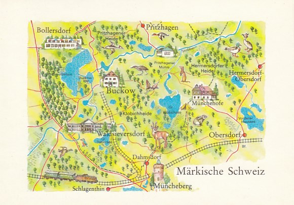 Postkarte als Landkarte Bollersdorf Pritzhagen Dahmsdorf Obersdorf Buckow Münchehofe Waldsievers