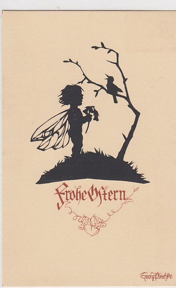 alte Glückwunsch Ansichtskarte Fröhliche Ostern Scherenschnitt Georg Plischke
