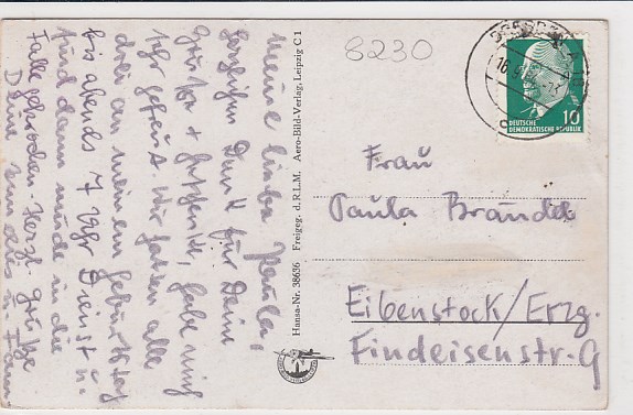 Bad Gottleuba Luftbild Bahnpoststempel 1940