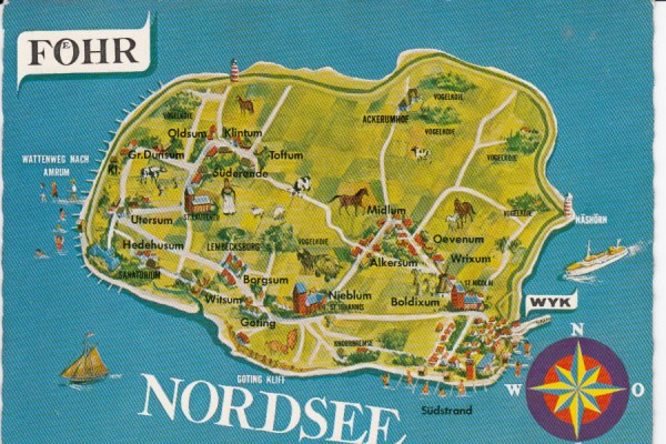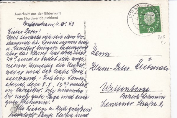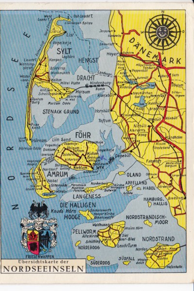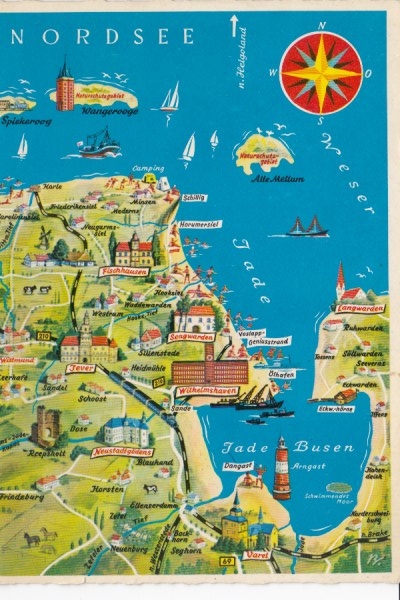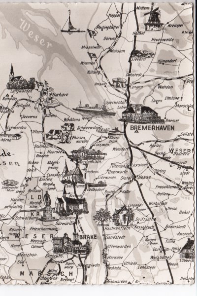 Postkarte als Landkarte Weser Bremerhaven Brake Dedesdorf Burhave Sandstedt Wulfsbüttel 1959