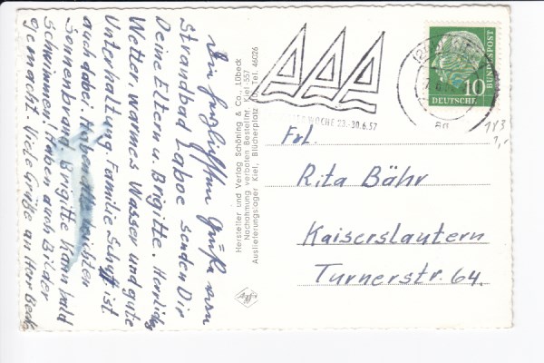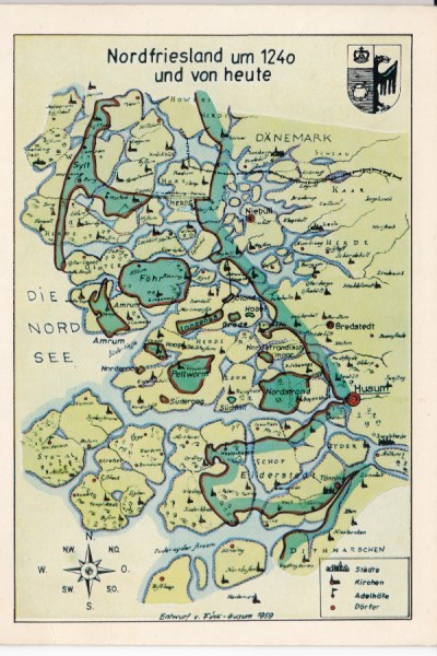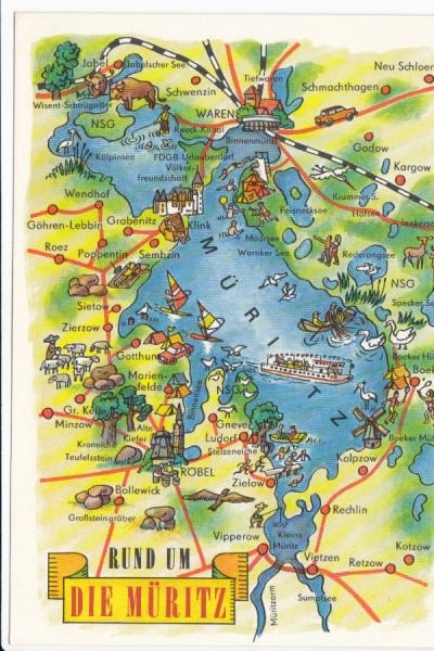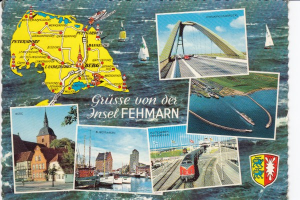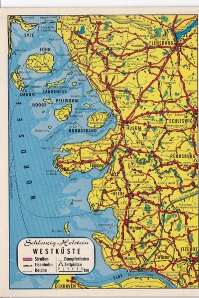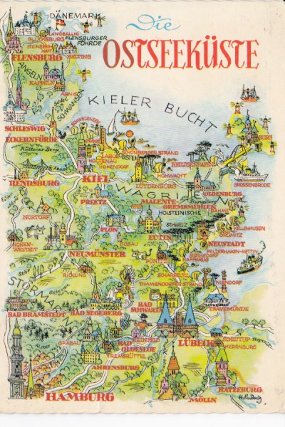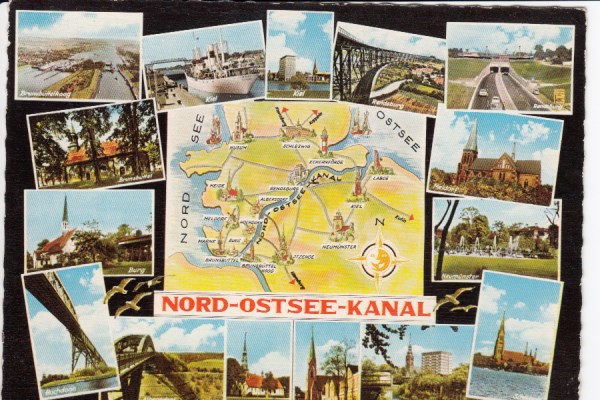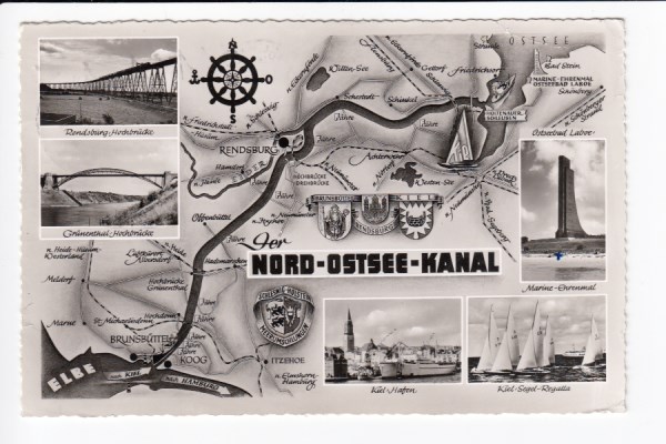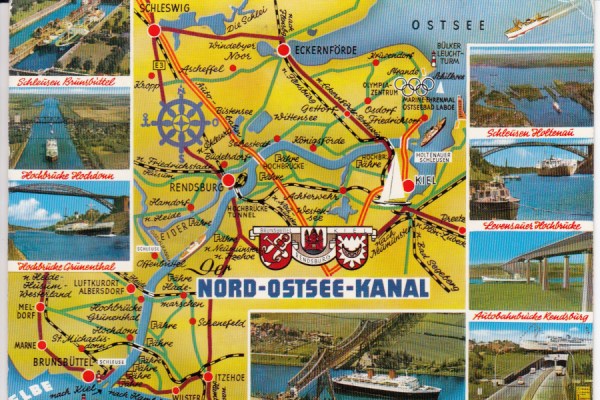 Postkarte als Landkarte Nord-Ostsee-Kanal Eckernförde Rendsburg Brunsbüttel Kiel