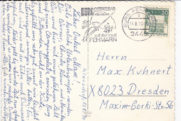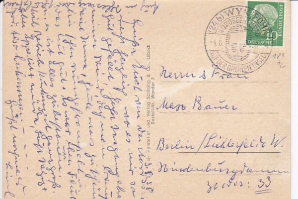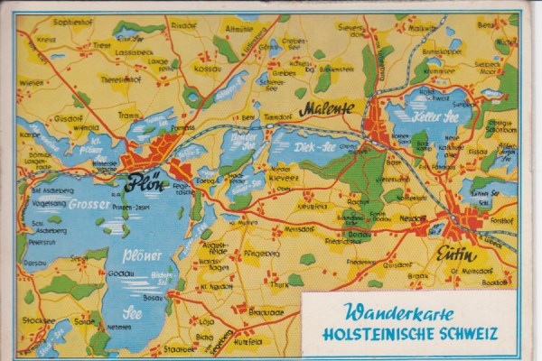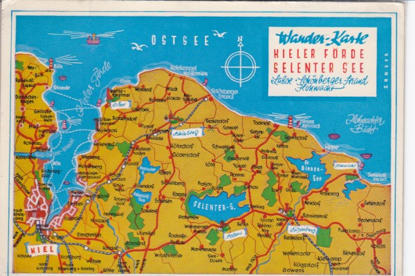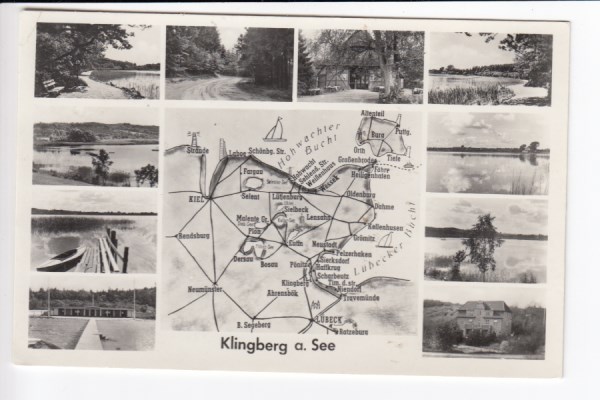 Postkarte als Landkarte Klingberg am See Kiel Fargau Lütjenburg Oldenburg Travemünde 1956