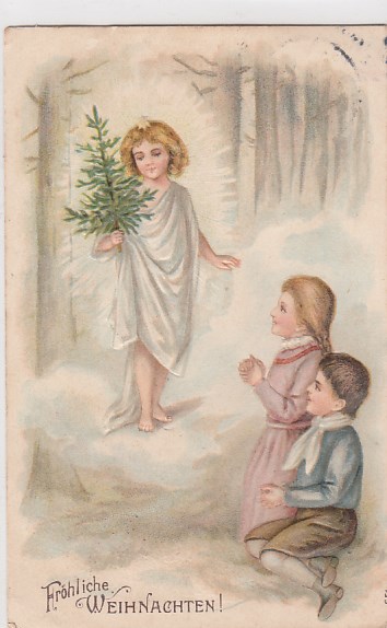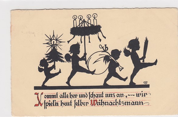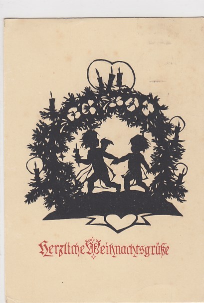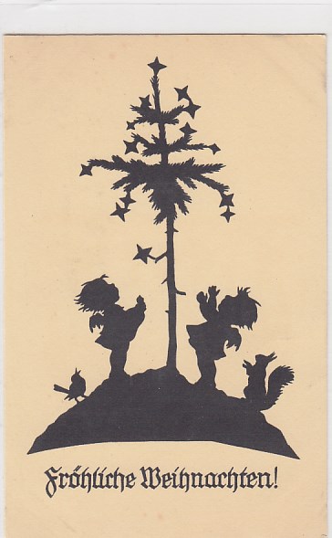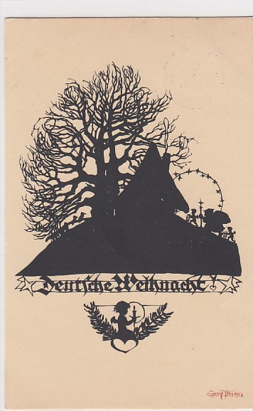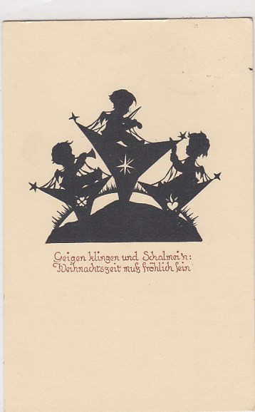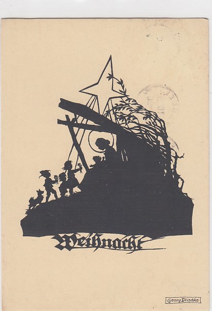 alte Glückwunsch Ansichtskarte Fröhliche Weihnachten Scherenschnitt Georg Plischke