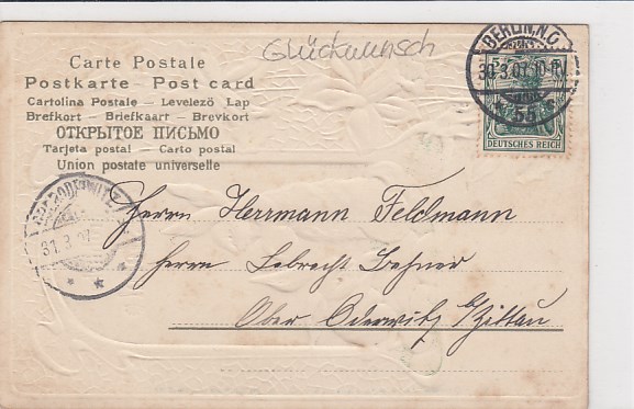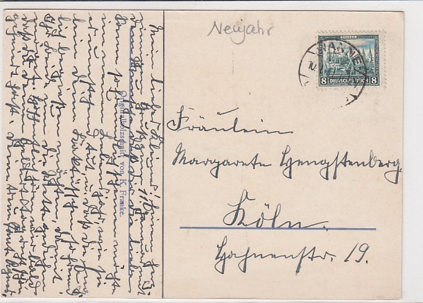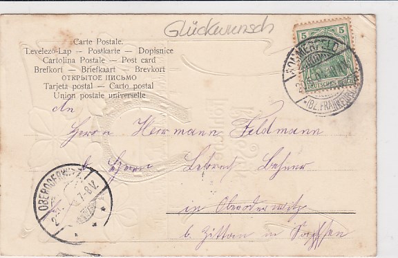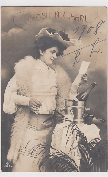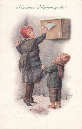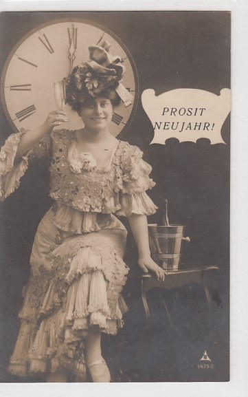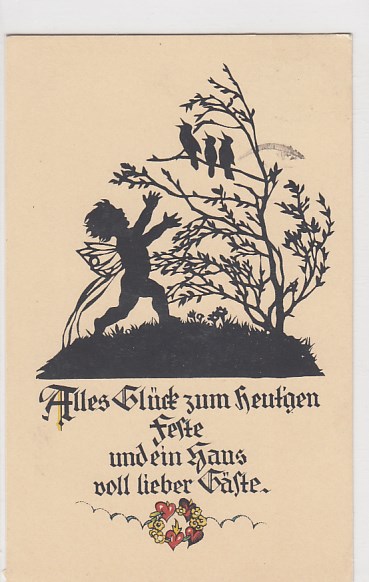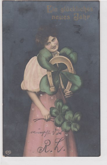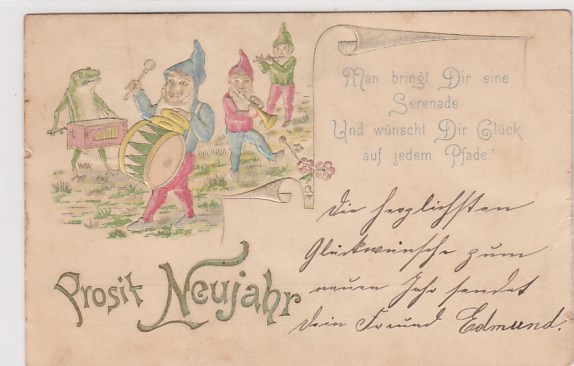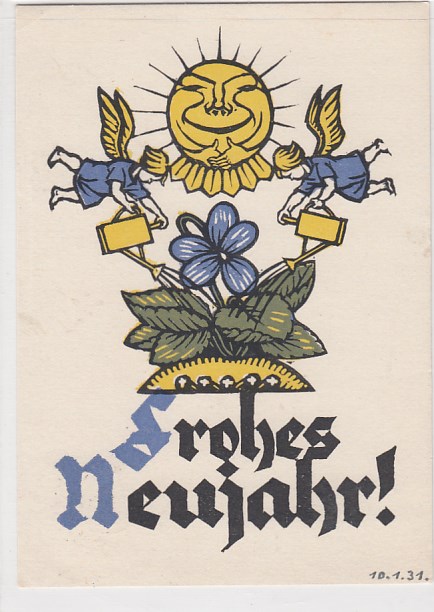 alte Glückwunsch Ansichtskarte Neujahr Original Holzschnitt von K.Franke
