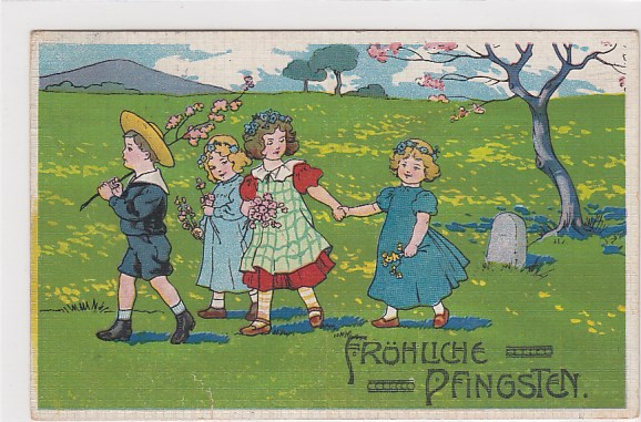 alte Glückwunsch Ansichtskarte Fröhliche Pfingsten 1922