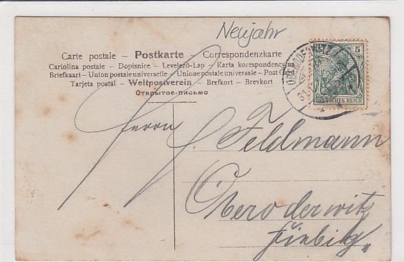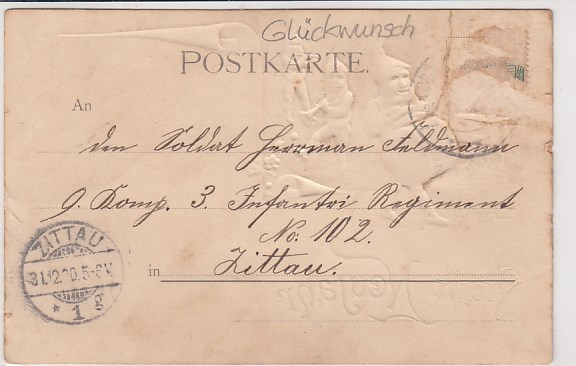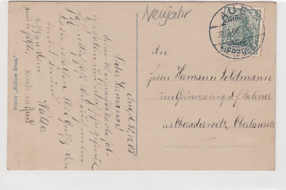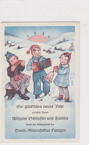 alte Glückwunsch Ansichtskarte Neujahr Textil Manufaktur Haagen