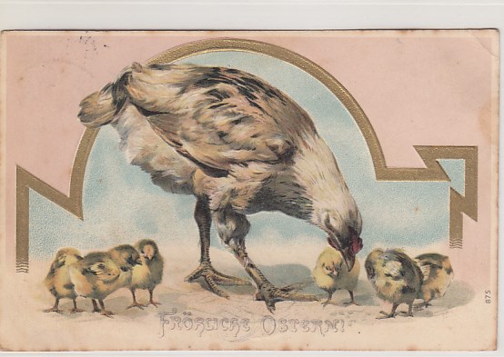 alte Glückwunsch Ansichtskarte Fröhliche Ostern Hühner Kücken 1906
