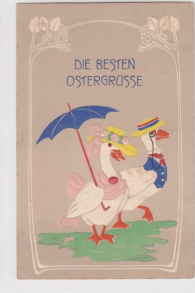 alte Glückwunsch Ansichtskarte Fröhliche Ostern Enten Prägekarte 1910