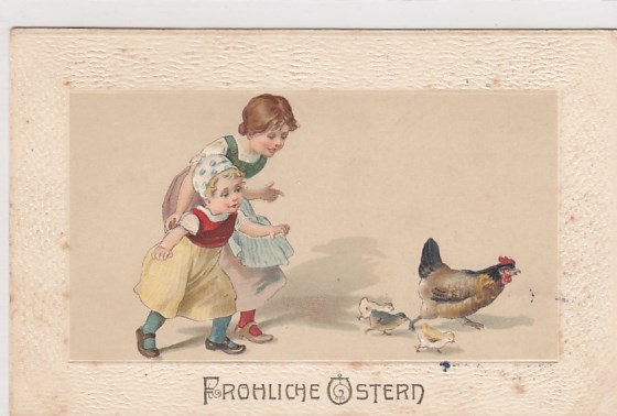 alte Glückwunsch Ansichtskarte Fröhliche Ostern Hühner Kücken 1910