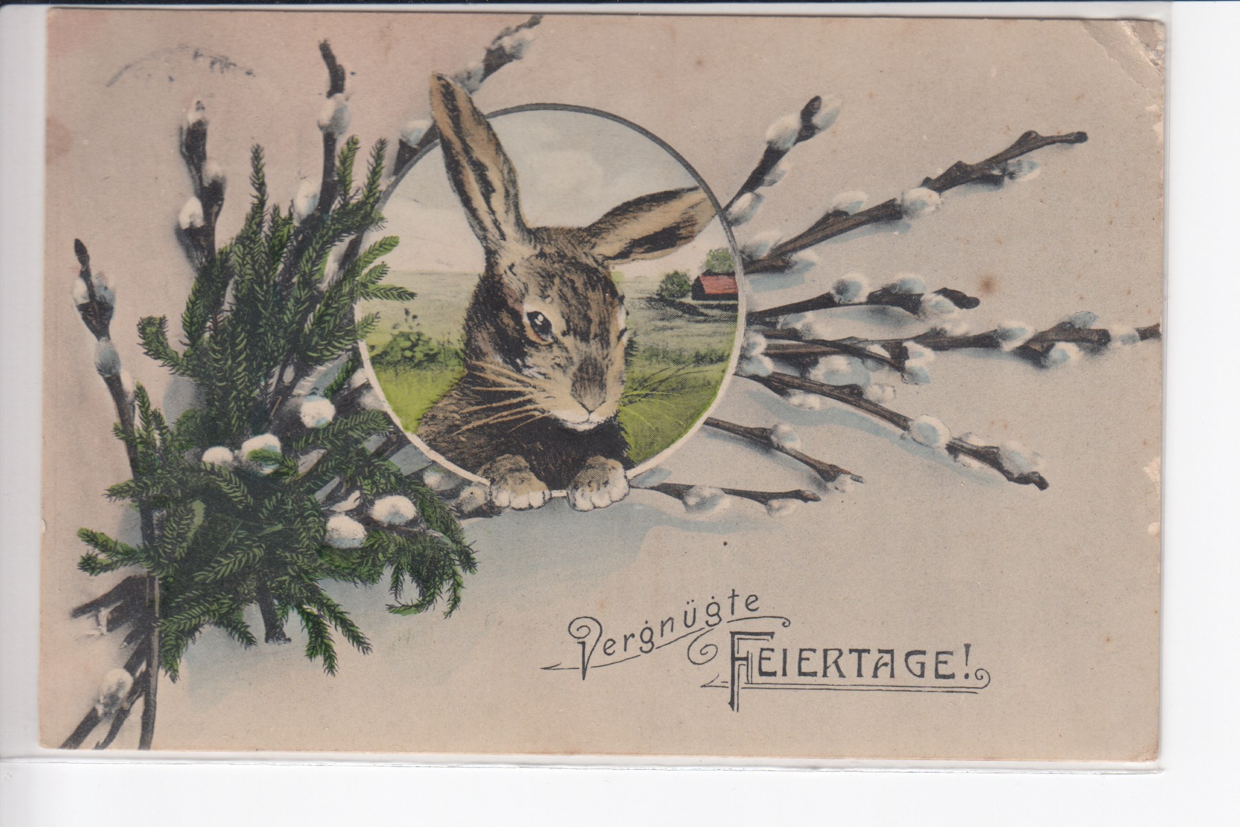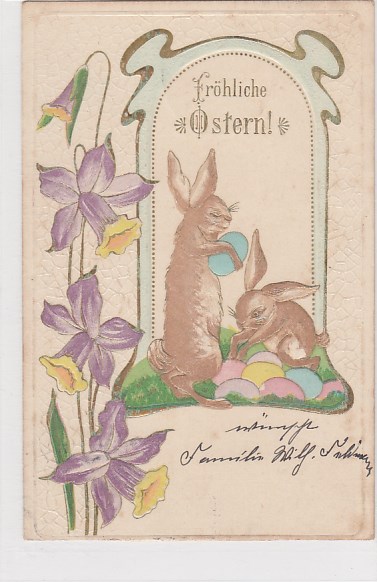 alte Glückwunsch Ansichtskarte Fröhliche Ostern Hasen 1910