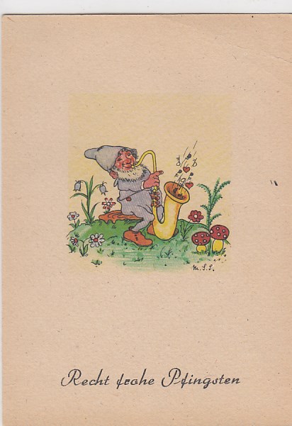 alte Glückwunsch Ansichtskarte Fröhliche Pfingsten Zwerge