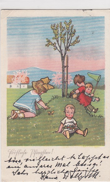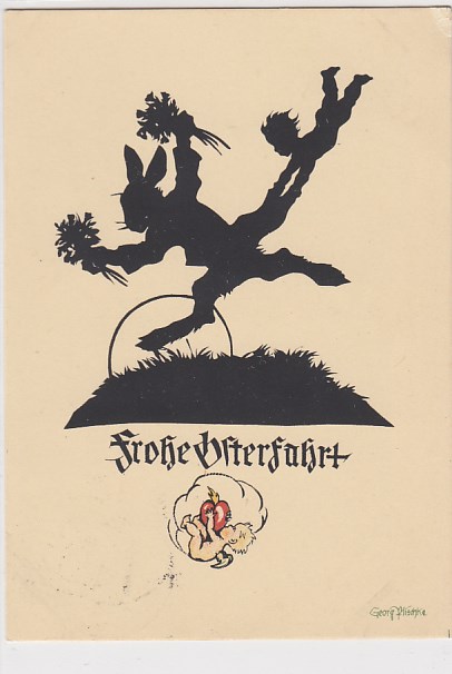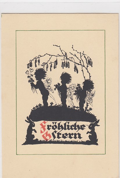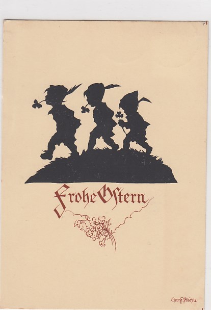 alte Glückwunsch Ansichtskarte Fröhliche Ostern Scherenschnitt Georg Plischke