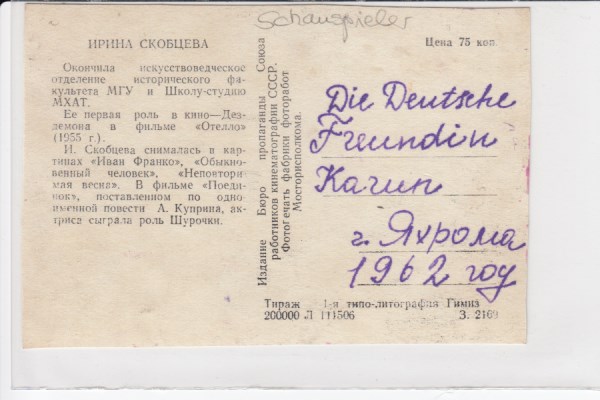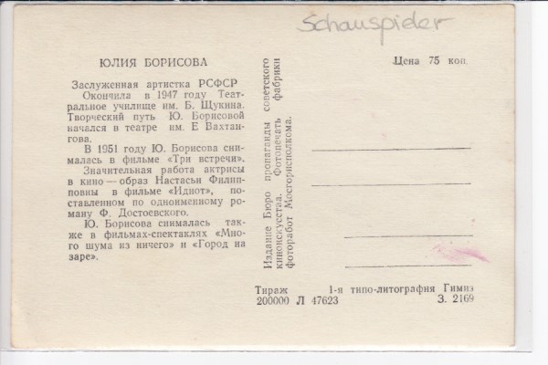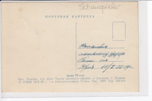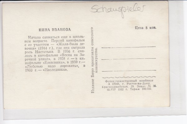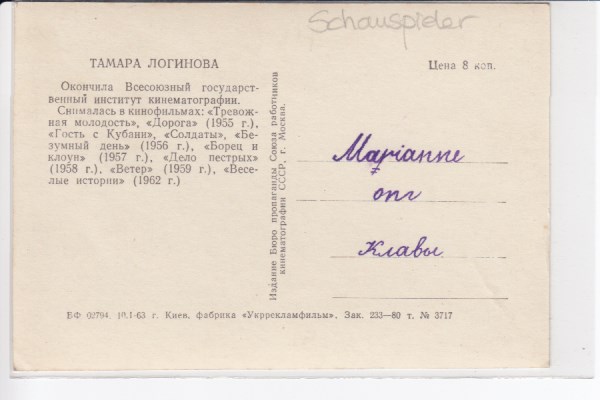 alte Schauspielerin Ansichtskarte aus Russland Name auf Russisch