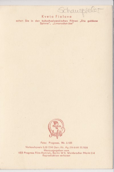 alte Schauspielerin Ansichtskarte Kveta Fialova