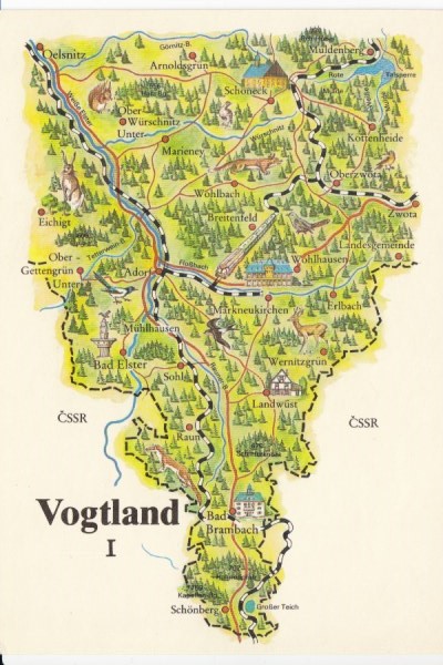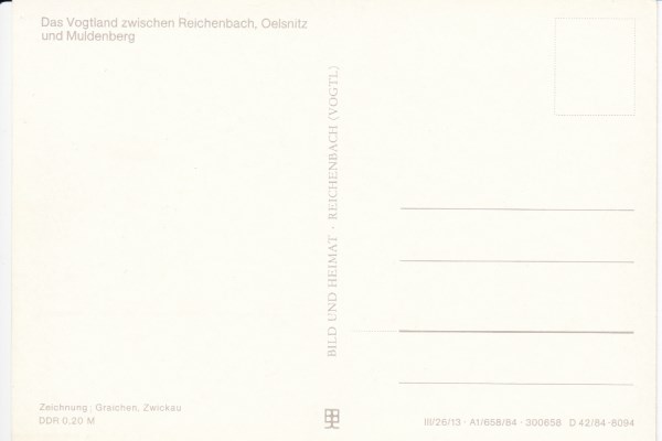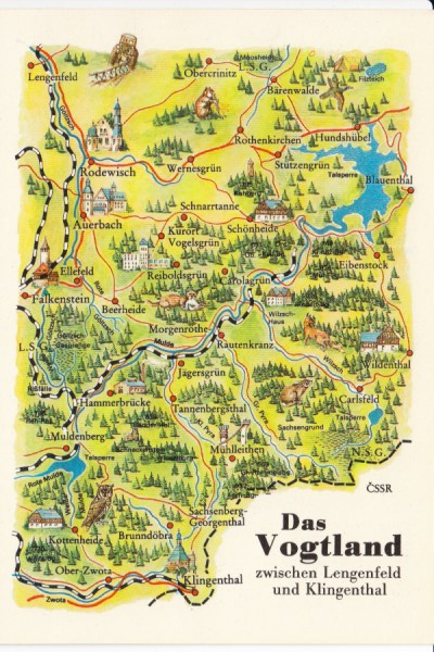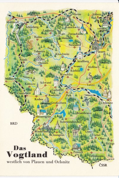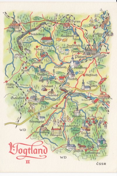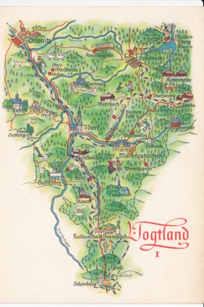 Postkarte als Landkarte Oelsnitz Greiz Reichenbach Rodewisch Falkenstein Grünbach Treuen Limbach