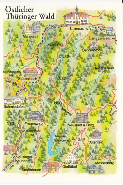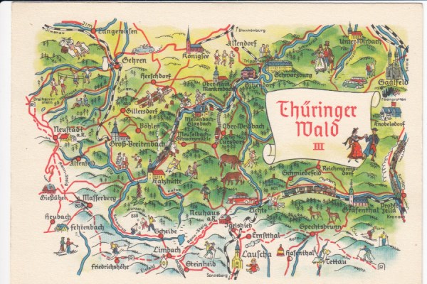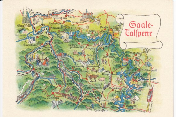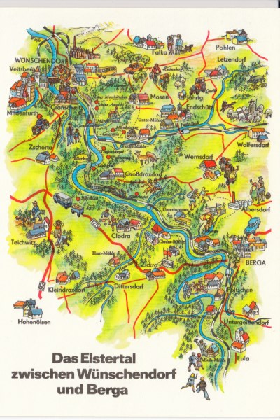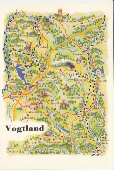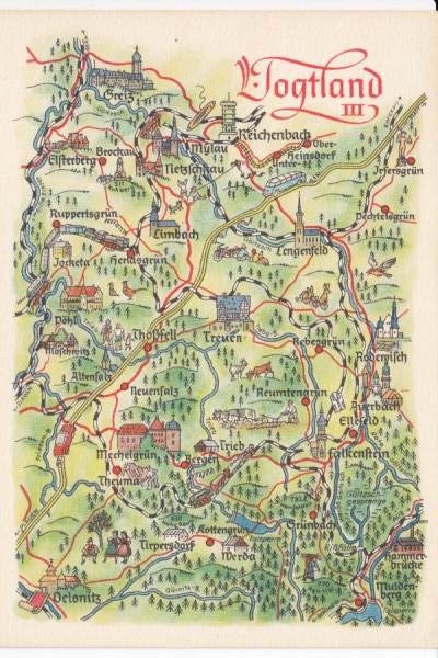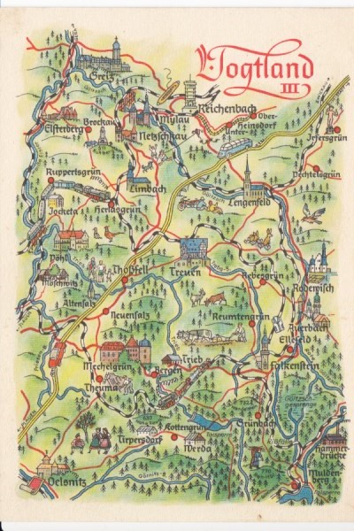 Postkarte als Landkarte Reichenbach Neuensalz Falkenstein Elsterberg Thoßfell Rodewisch Auerbach