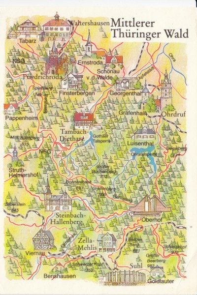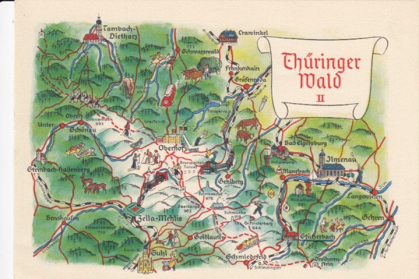 Postkarte als Landkarte Erzgebirge Lengefeld Mulda Frauenstein Sayda Seiffen Zöblitz Langenau