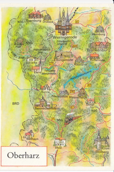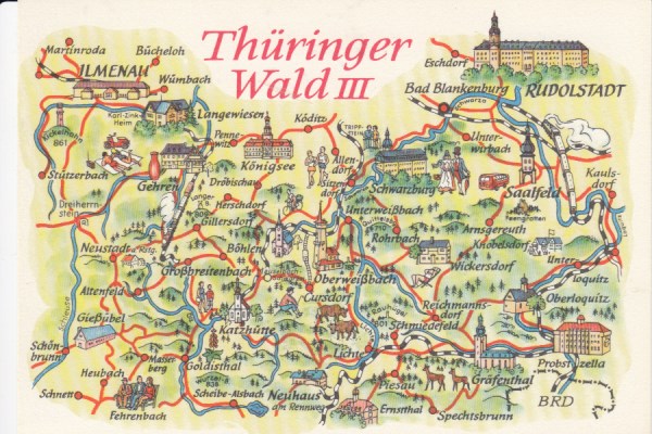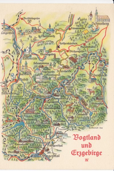 Postkarte als Landkarte Erzgebirge Schneeberg Falkenstein Eibenstock Lengenfeld Klingenthal Carl