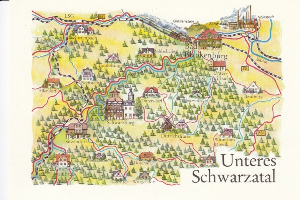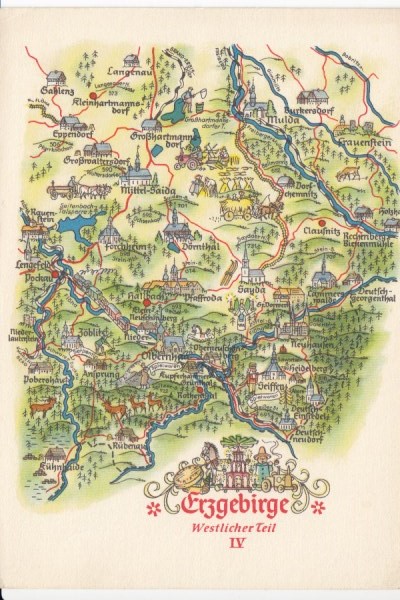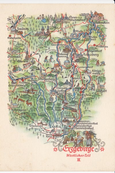 Postkarte als Landkarte Wolkenstein Ehrenfriedersdorf Geyer Zwönitz Jöhstadt Bärenstein Crottend