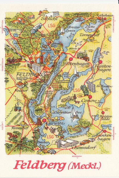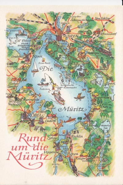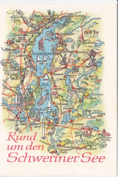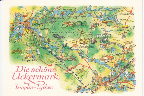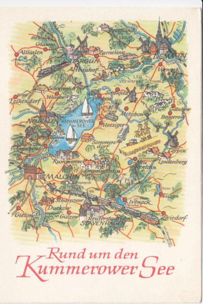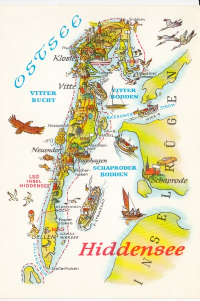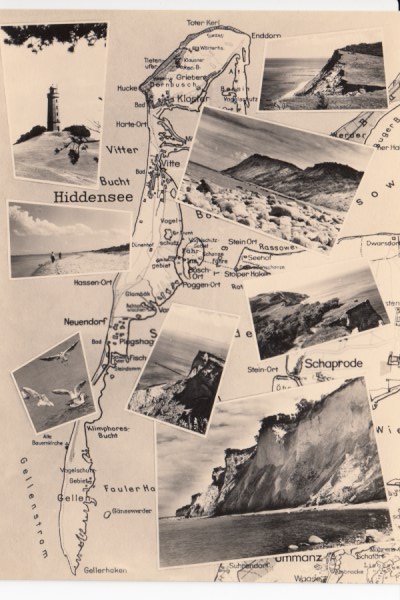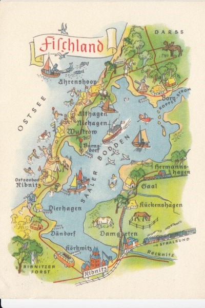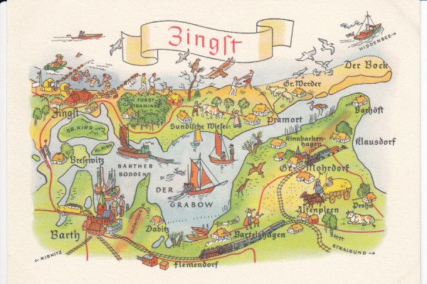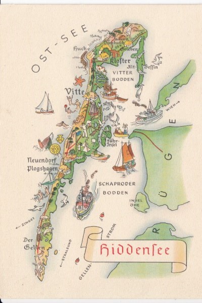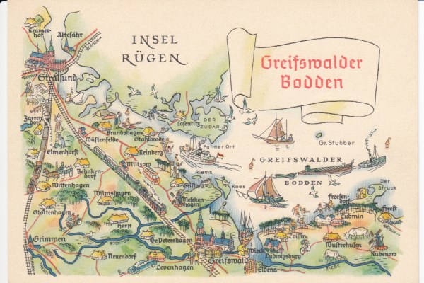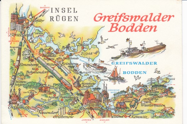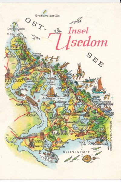 Postkarte als Landkarte Usedom Wolgast Zinnowitz Karlshagen Bansin Heringsdorf Ahlbeck Kröslin