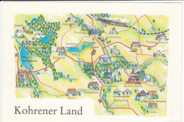 Postkarte als Landkarte Benndorf Frohburg Eschefeld Kohren-Sahlis Linda Dolsenhain Syhra