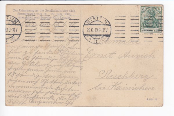 Gesellschaftsreise Skandinavien Klub aus Leipzig 1910 Ostsee Dampfer Imperator Stettin