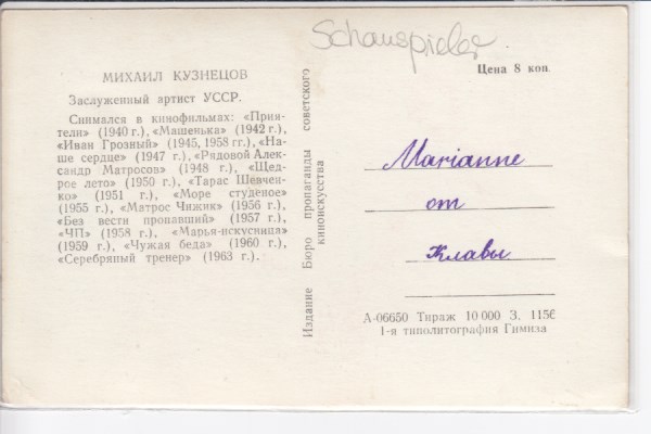alte Schauspieler Ansichtskarte aus Russland Name auf Russisch