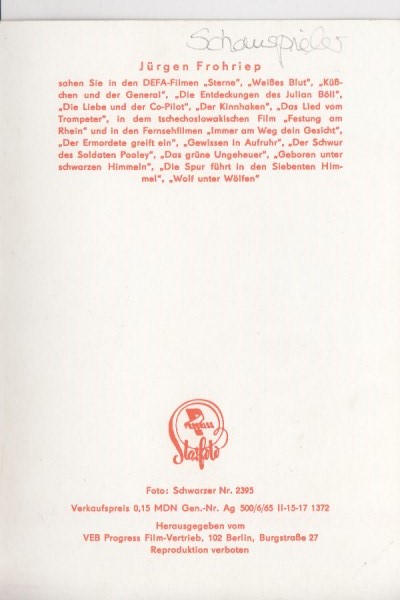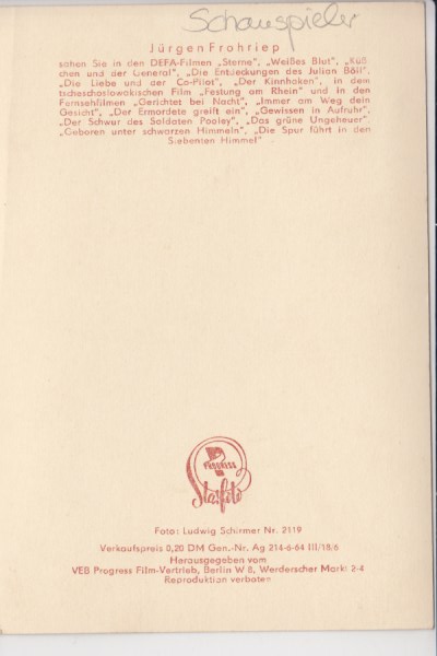 alte Schauspieler Ansichtskarte Jürgen Frohriep