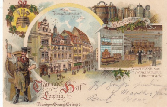 Leipzig Litho Ansichtskarte Thüringer Hof Bier Würzburger Bürgerbräu 1898