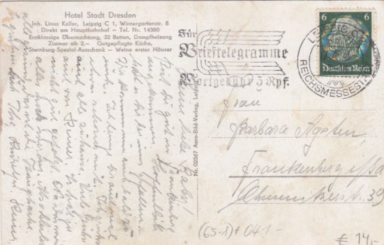 Leipzig Hotel Stadt Dresden Bahnhof 1941