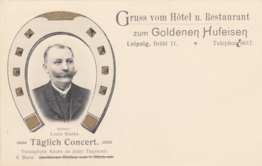 Leipzig Brühl Hotel Restaurant zum Goldenen Hufeisen ca 1900