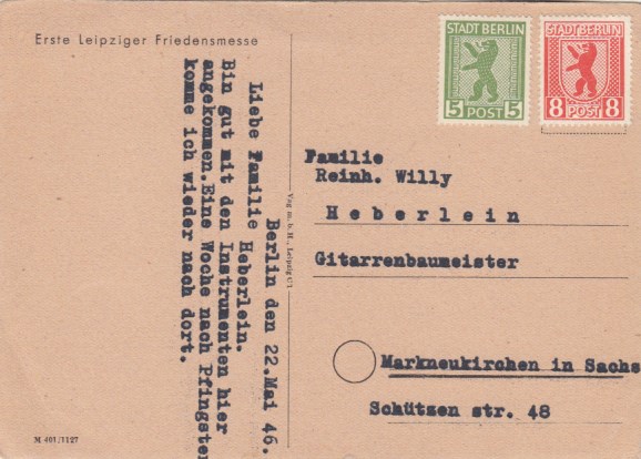 Leipzig Bach Anlaß AK Friedensmesse 1946 Breifmarken Stadt Berlin