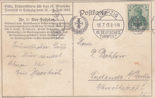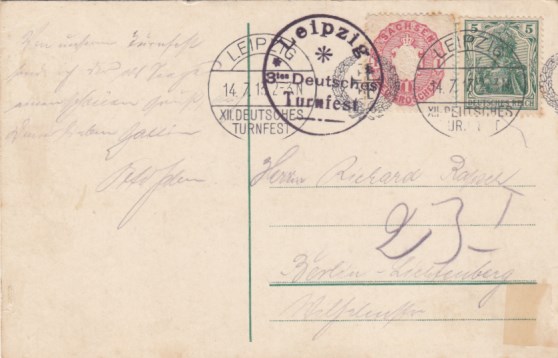 Leipzig 12. Deutsches Turnfest Sport Sonderstempel 1913