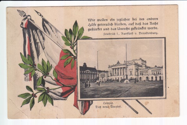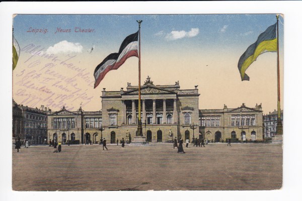 Leipzig Theater Patriotische AK mit Fahnen 1.WK 1917