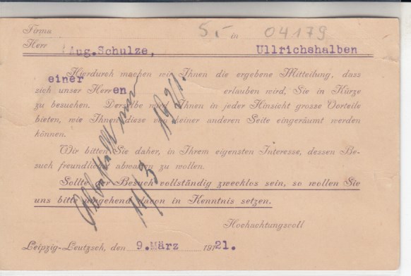 Leipzig Leutzsch Werbung Reklame Holzbearbeitungs-Maschinenfabrik 1921