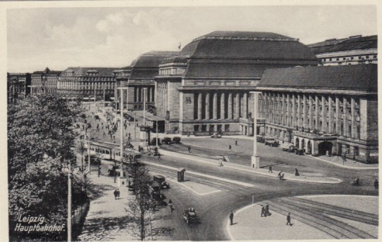 Leipzig Bahnhof mit Strassenbahn Messe Sonderstempel und Briefmarken 1941