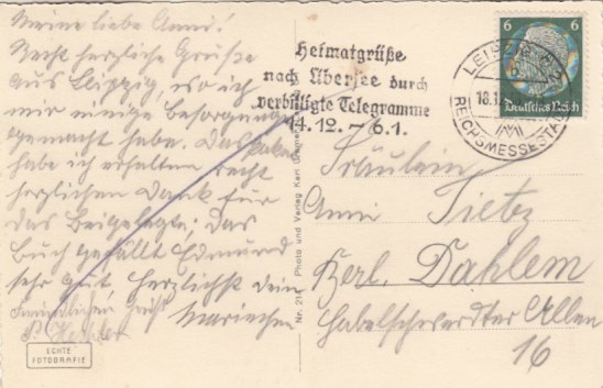 Leipzig Bahnhof Messe Sonderstempel 1946