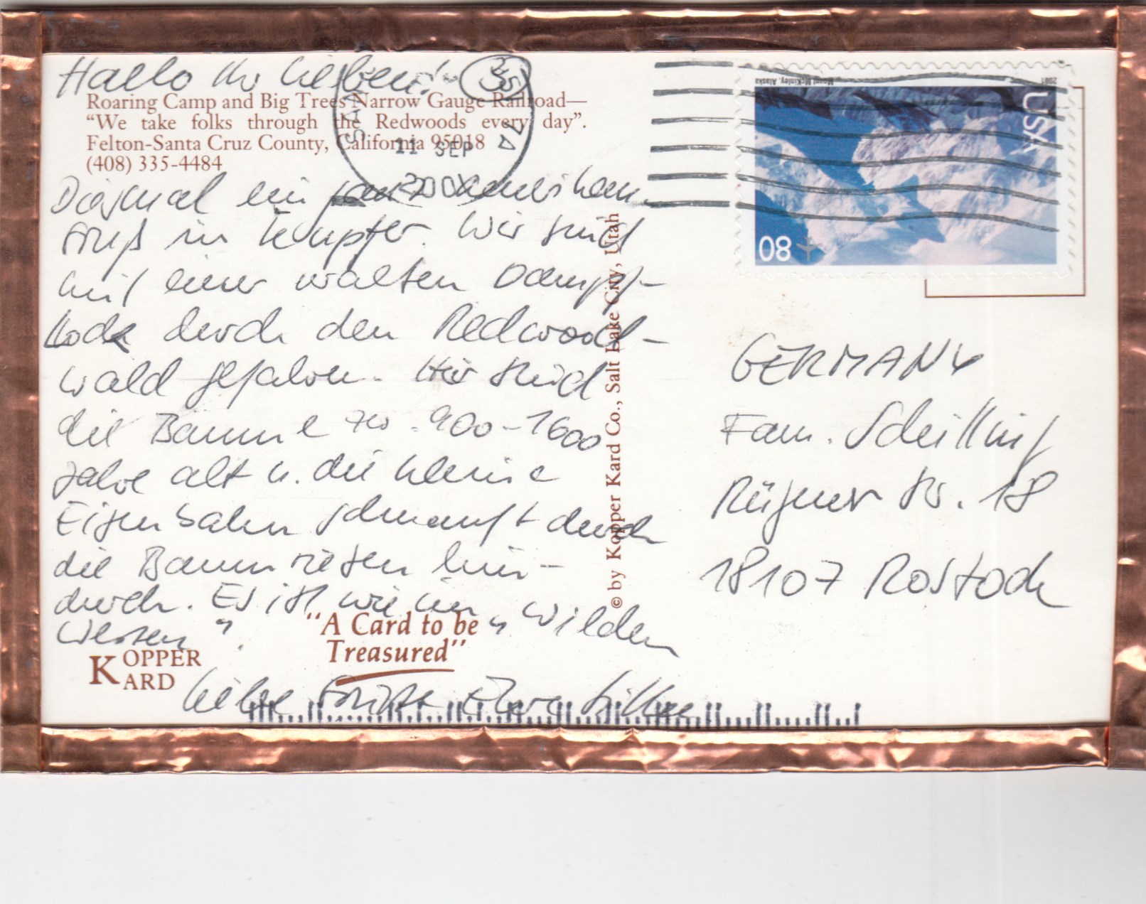 Felton-Santa Cruz California Redwoods Railroad Eisenbahn AK aus Kupfer