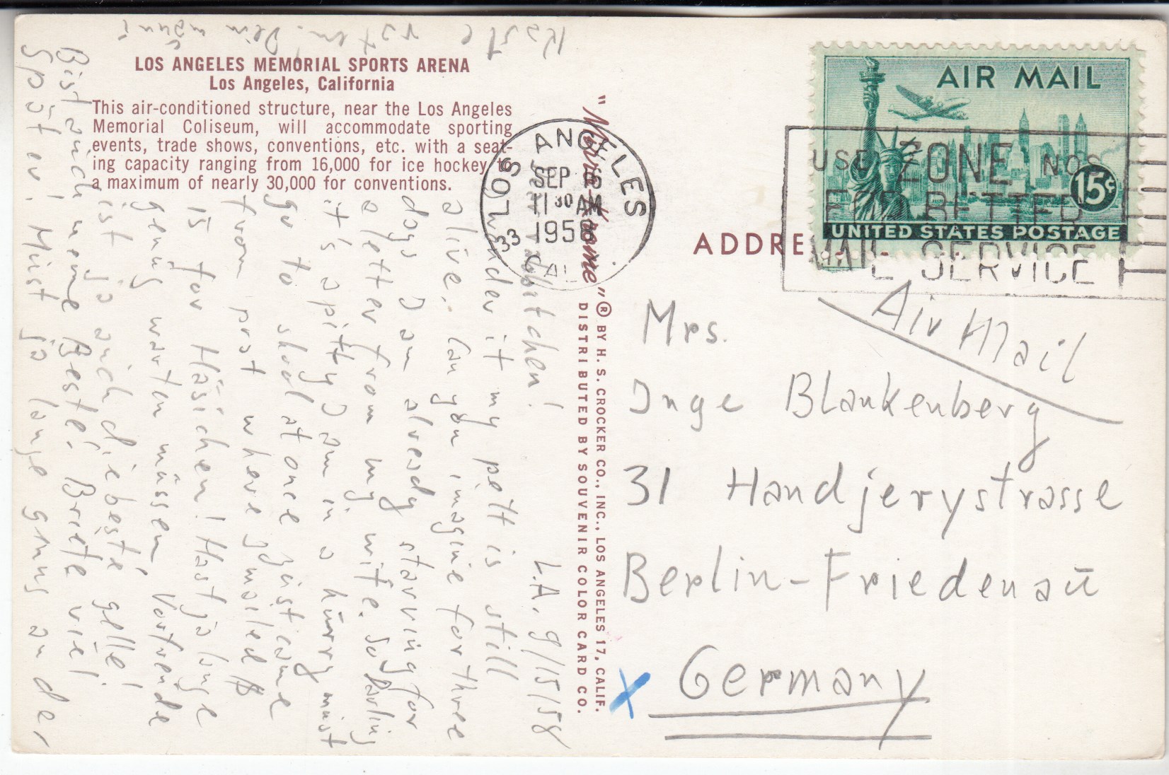 Los Angeles California USA old postcard Sports Arena Stadion 1958