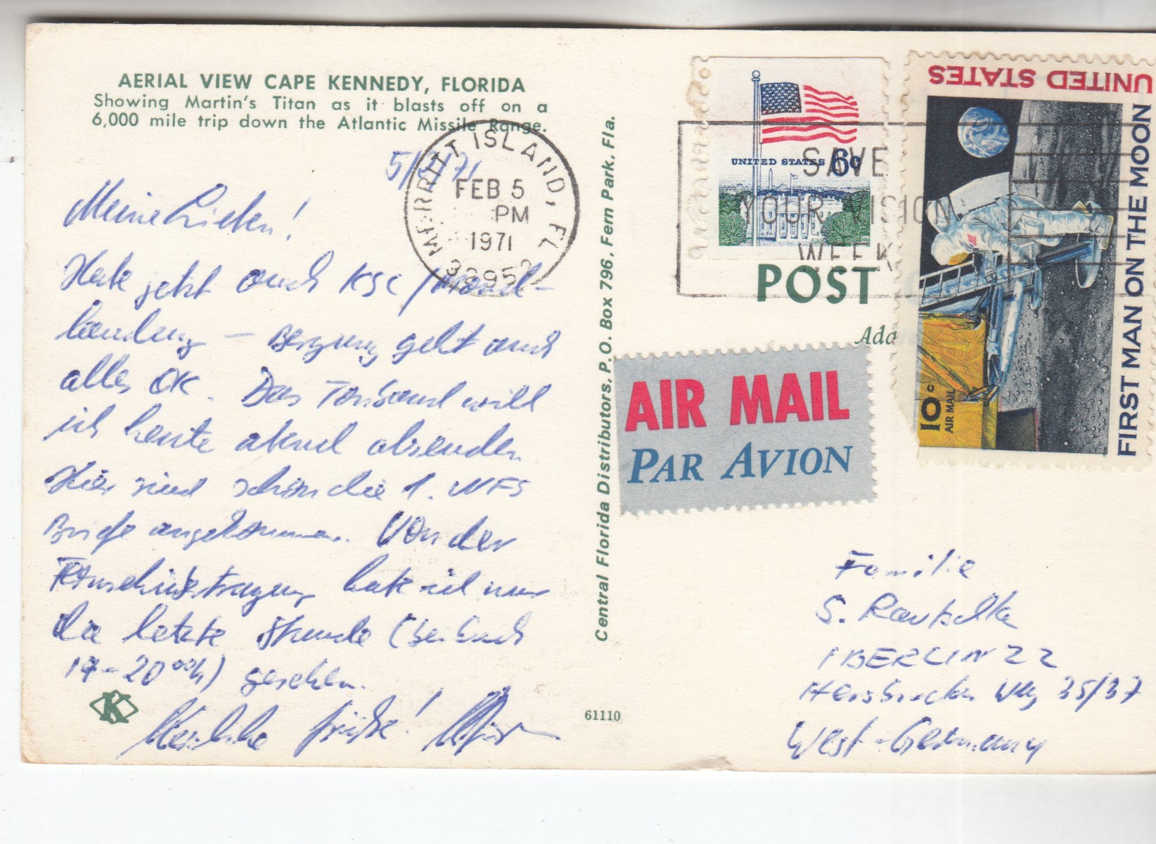 Kennedy Space Center Florida Raumfahrt USA old postcard 1971