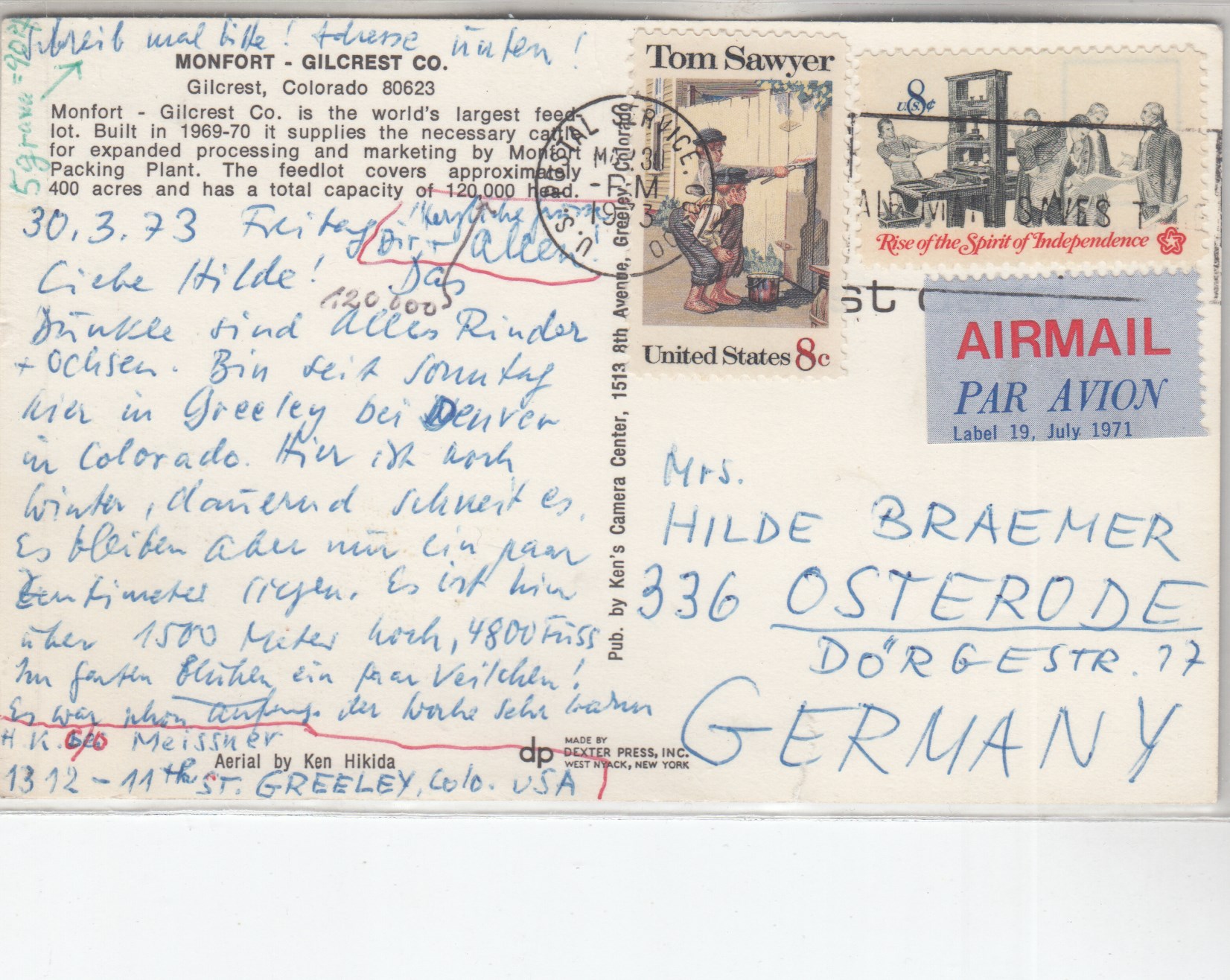Monfort Gilcrest Co. Colorado 1973 USA old postcard