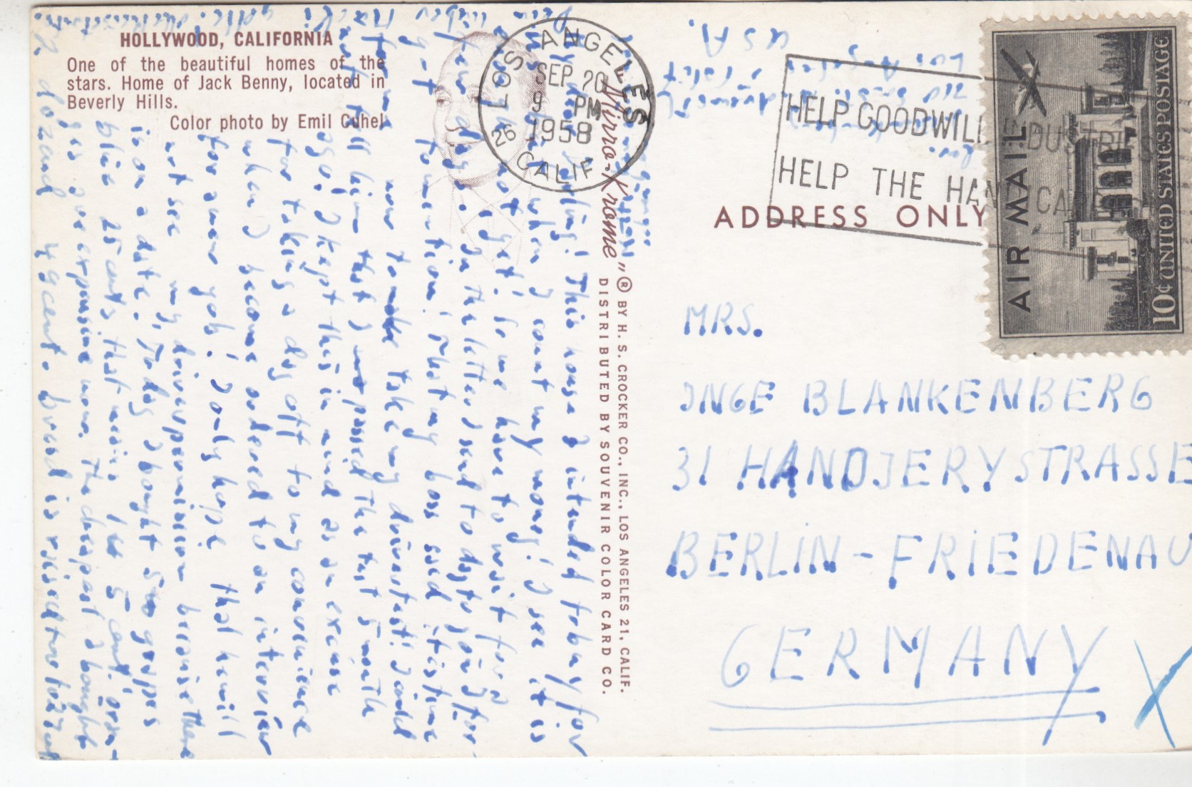 Hollywood Californien Kalifornien USA old postcard 1958 Jack Benny
