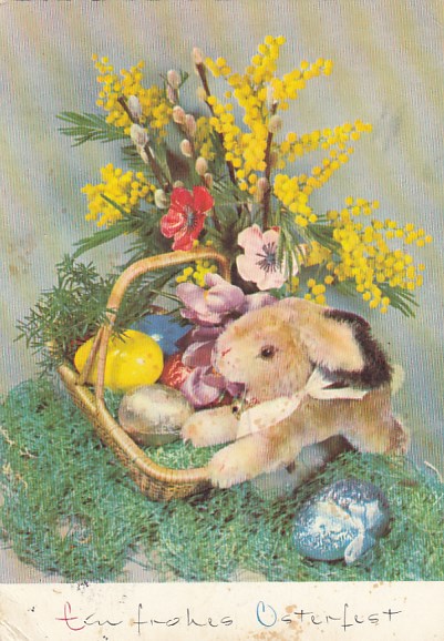 Glückwunsch AK Frohe Ostern Ansichtskarte Hasen 3D
