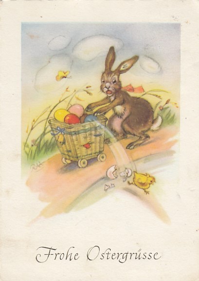 Glückwunsch AK Frohe Ostern Ansichtskarte Hasen Zwerge Künstlerkarte