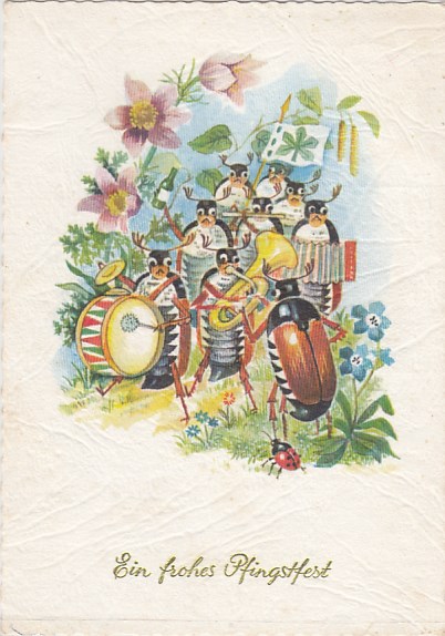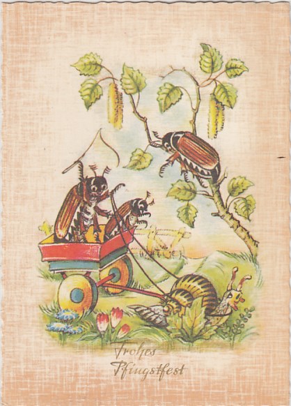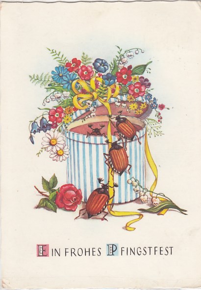Glückwunsch AK Frohe Pfingsten Ansichtskarte Maikäfer